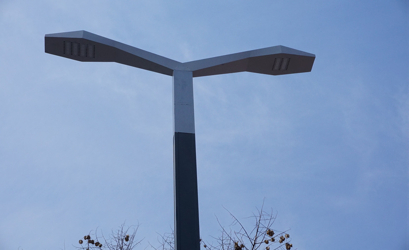 “科技之光”路燈用硬朗的線條設(shè)計語言詮釋科技的內(nèi)涵,幾何的構(gòu)成帶來強(qiáng)烈的工業(yè)感和力量感。