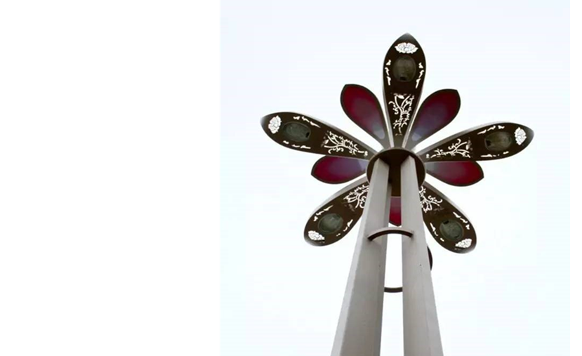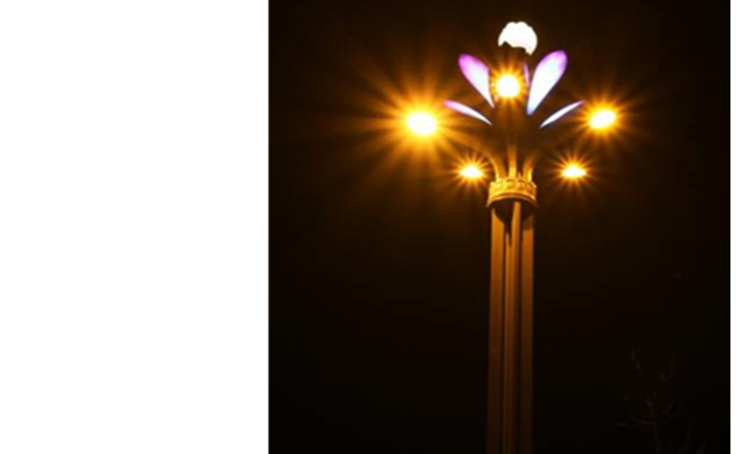 燈桿頂部裝飾座提取蓮花寶座特征進(jìn)行開(kāi)模制作,增加燈桿美觀性。葉片夜景效果荷葉形完美展現(xiàn)出來(lái),使整個(gè)燈型的功能照明和景觀照明完美結(jié)合。