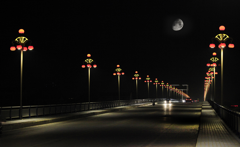 石門大道是石門火車站進(jìn)入石門縣城的迎賓大道,雙向六車道,人流量車流量都很大,設(shè)計(jì)者據(jù)此設(shè)計(jì)了1+3+6三層組合的15米高的柑橘景觀路燈“碩果累累”,燈柱部分是“中國(guó)柑橘之鄉(xiāng)”的篆體紋飾,突顯石門“柑橘”元素。2017年春節(jié)前完工。石門二橋是跨流經(jīng)石門縣城的澧水大河的老橋,雙向兩車道人流量車流量相對(duì)較少,設(shè)計(jì)者設(shè)計(jì)了安裝了1+4兩層組合7.5米高的柑橘景觀路燈。項(xiàng)目于2017年4月完工。這兩款燈型均內(nèi)置LED光源,節(jié)能環(huán)保。