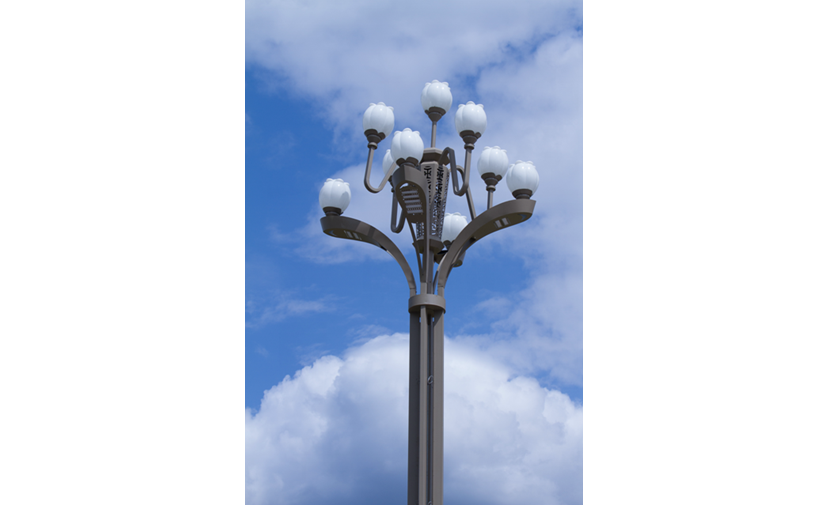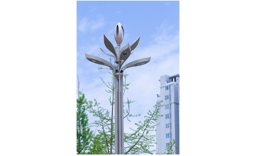 春意盎然景觀燈,寓意國民經(jīng)濟就像春天充滿生機,錚錚向榮之意;燈具的設(shè)計主要通過花卉造型進行抽象設(shè)計而來,結(jié)合現(xiàn)代工藝轉(zhuǎn)化為集景觀與功能照明為一體的戶外照明工具;燈桿主體、桿體、底座材質(zhì)均為金屬鋼件,表面熱浸鋅后噴塑處理。