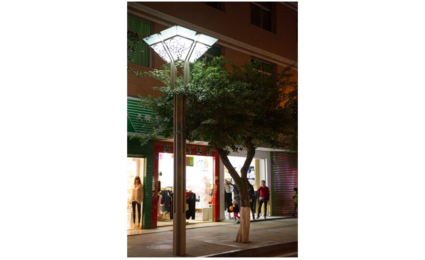 芙蓉中華燈以“芙蓉”為設(shè)計元素,采用花瓣的形式,實現(xiàn)了燈桿與燈頭的實體連接。燈具以城市照明華燈造型為根基,在原有景觀照明基礎(chǔ)上,增加了功能照明,使功能照明和景觀照明完美結(jié)合,且顯示出燈型的華麗時尚,營造出一幅“華燈耀營山”的美麗景象。