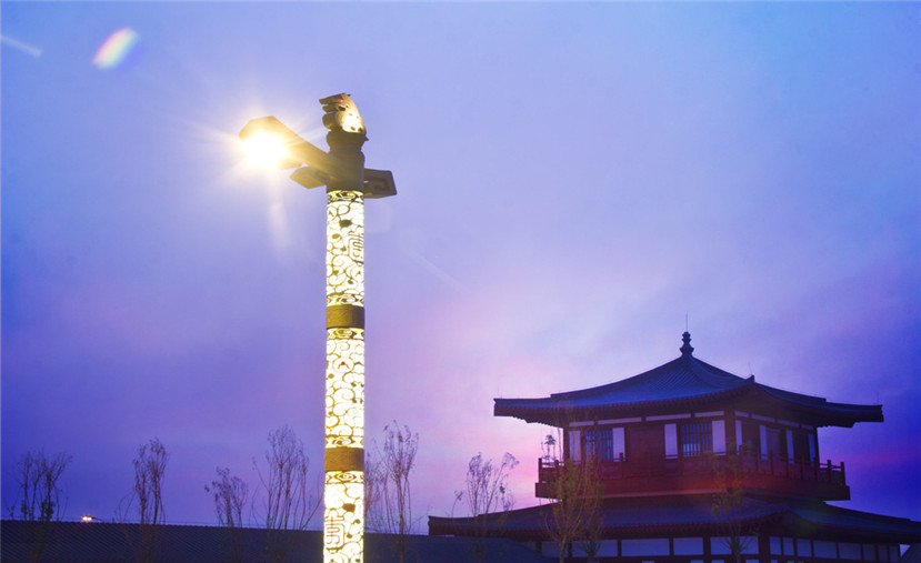 華體照明根據(jù)隆堯唐祖陵的華表這種古代建筑形式,為隆堯李氏文化園內(nèi)量身定制“望柱”景觀路燈。