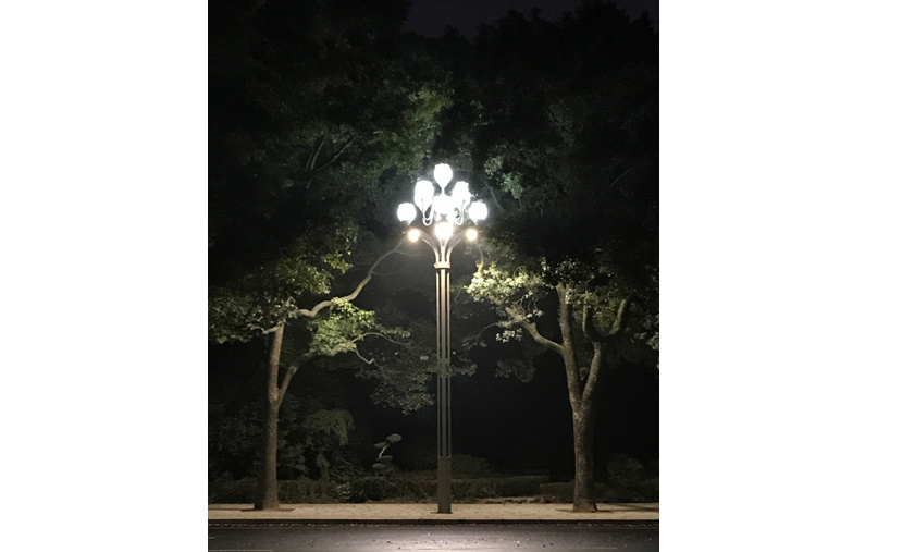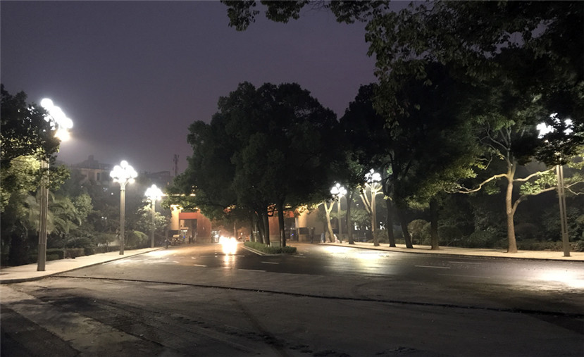 兼具功能照明和景觀照明的芙蓉中華燈在保證道路照明的同時,上部的LED景觀照明燈具將省委大院門口郁郁蔥蔥的樹木照亮,形成了很好地景觀照明效果,提升了湖南省委大院周圍夜景的景觀和長沙城市形象。