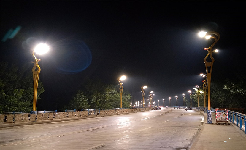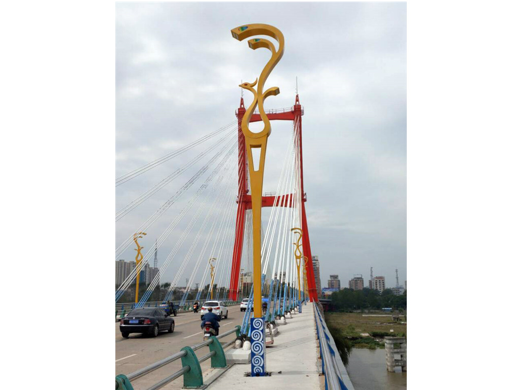 華體科技根據鳳臺縣名稱的由來,為鳳臺淮河大橋定制設計“鳳舞九天”文化路燈。