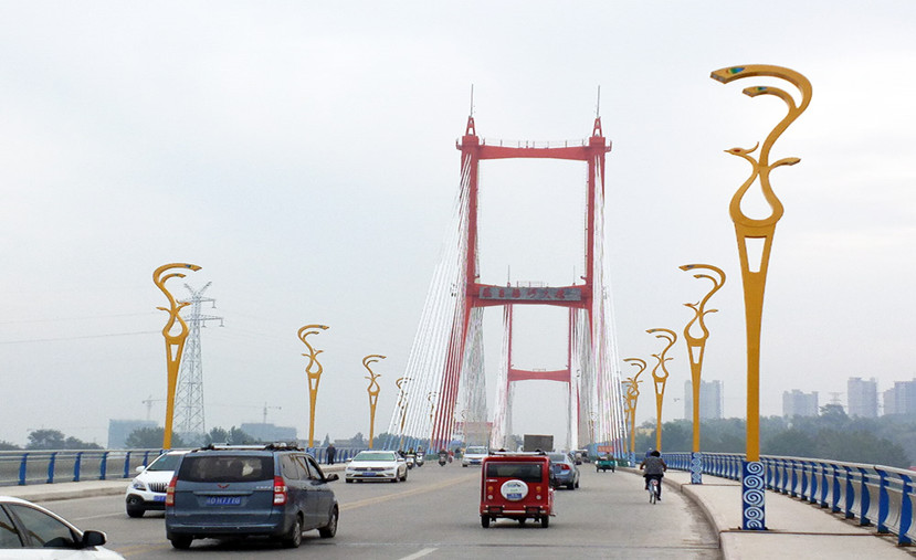 安裝在鳳臺縣淮河大橋上的“鳳舞九天”地域系列文化路燈,白天猶如腳踩祥云的鳳凰,也寓意鳳臺縣經濟發(fā)展社會穩(wěn)定的太平盛世。