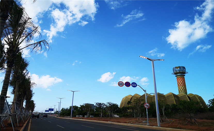 海口江東新區(qū)主干道的這些路燈,有“飛”一般的感覺
