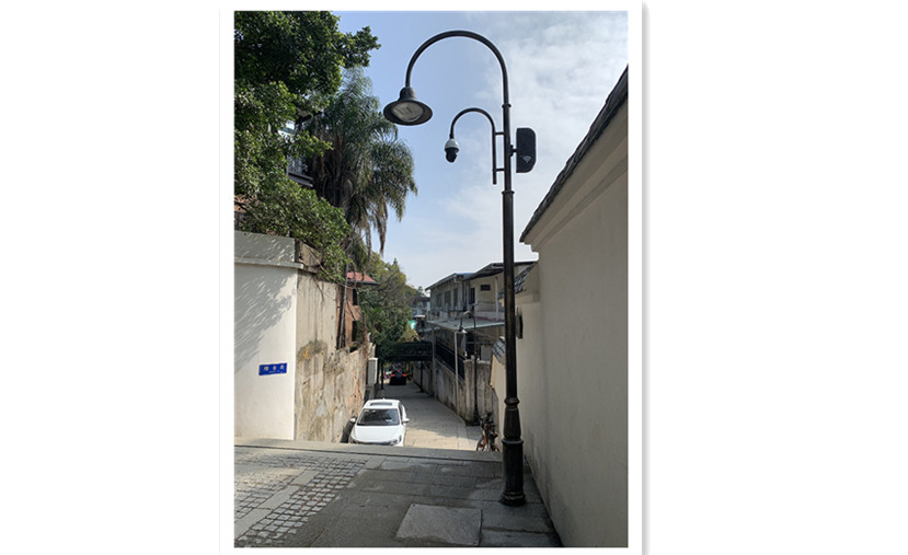 智慧路燈在外觀設(shè)計上,采用歐式風格,將煙臺山街區(qū)中西文化碰撞交融的歷史文化底蘊很好地呈現(xiàn)了出來,讓路燈也成為這個特色街區(qū)里面具有鮮明歷史文化特色的“家具”。