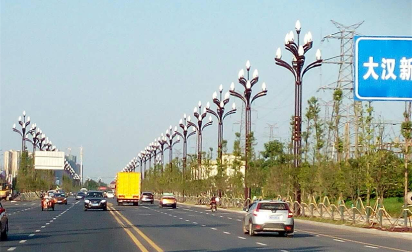 夾山大道,是石門縣縣城主干道之一。 為改善夾山大道目前照明效果不佳的現(xiàn)狀, 2016年1月,石門縣城區(qū)道路提質改造項目(夾山大道)全面啟動,四川華體照明科技股份有限公司根據(jù)夾山大道的道路情況以及當?shù)氐奈幕?,設計并安裝了“茶禪一味”八叉九火玉蘭燈。
