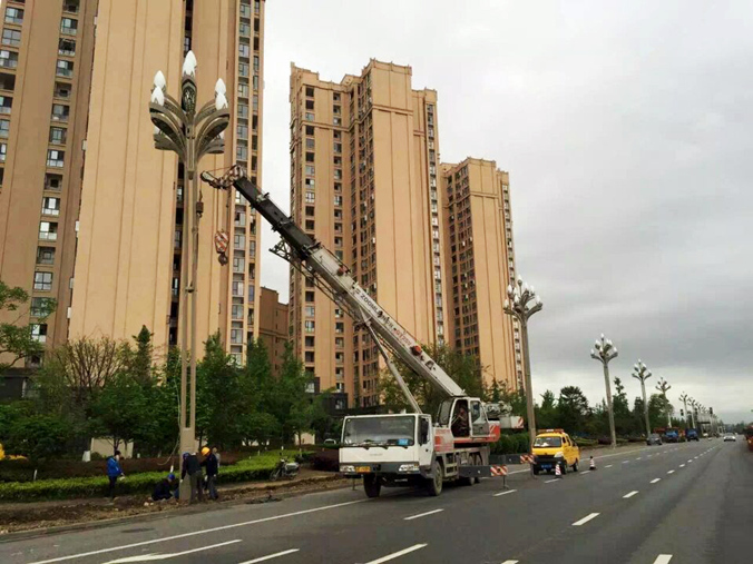 3月29日上午,綿竹市蘇綿大道、回瀾大道路燈改造工程正式啟動。 據(jù)了解,蘇綿大道、回瀾大道的路燈于2004年安裝,距今已有12年,大部份燈組已出現(xiàn)損壞現(xiàn)象。為了營造舒適的人居環(huán)境,提升城市景觀,華體照明積極配合蘇綿大道、回瀾大道路燈改造工程,設(shè)計(jì)并安裝了16米八叉九火玉蘭燈。