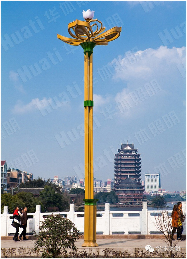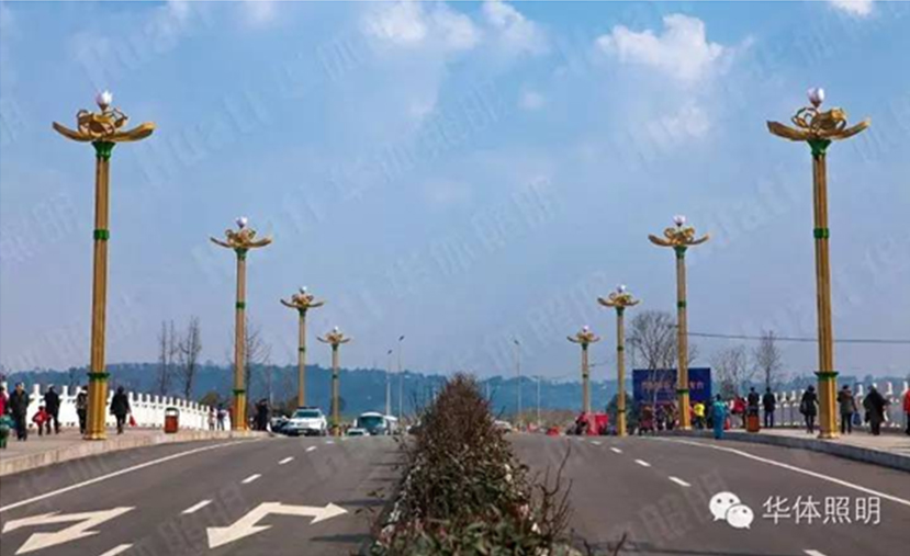 四川眉山市老泉橋,是連通眉山城區(qū)與東坡島的重要交通樞紐,也是東坡湖上一道亮麗的風(fēng)景線(xiàn)。2014年12月,華體照明為老泉橋增添—“金荷羅裙”景觀照明路燈。