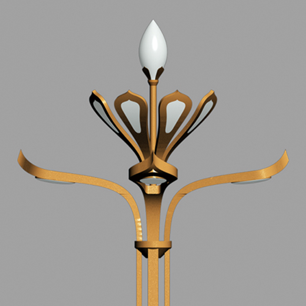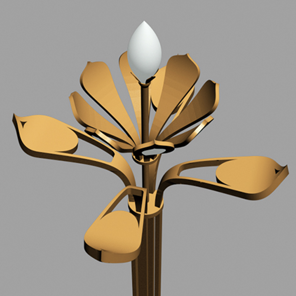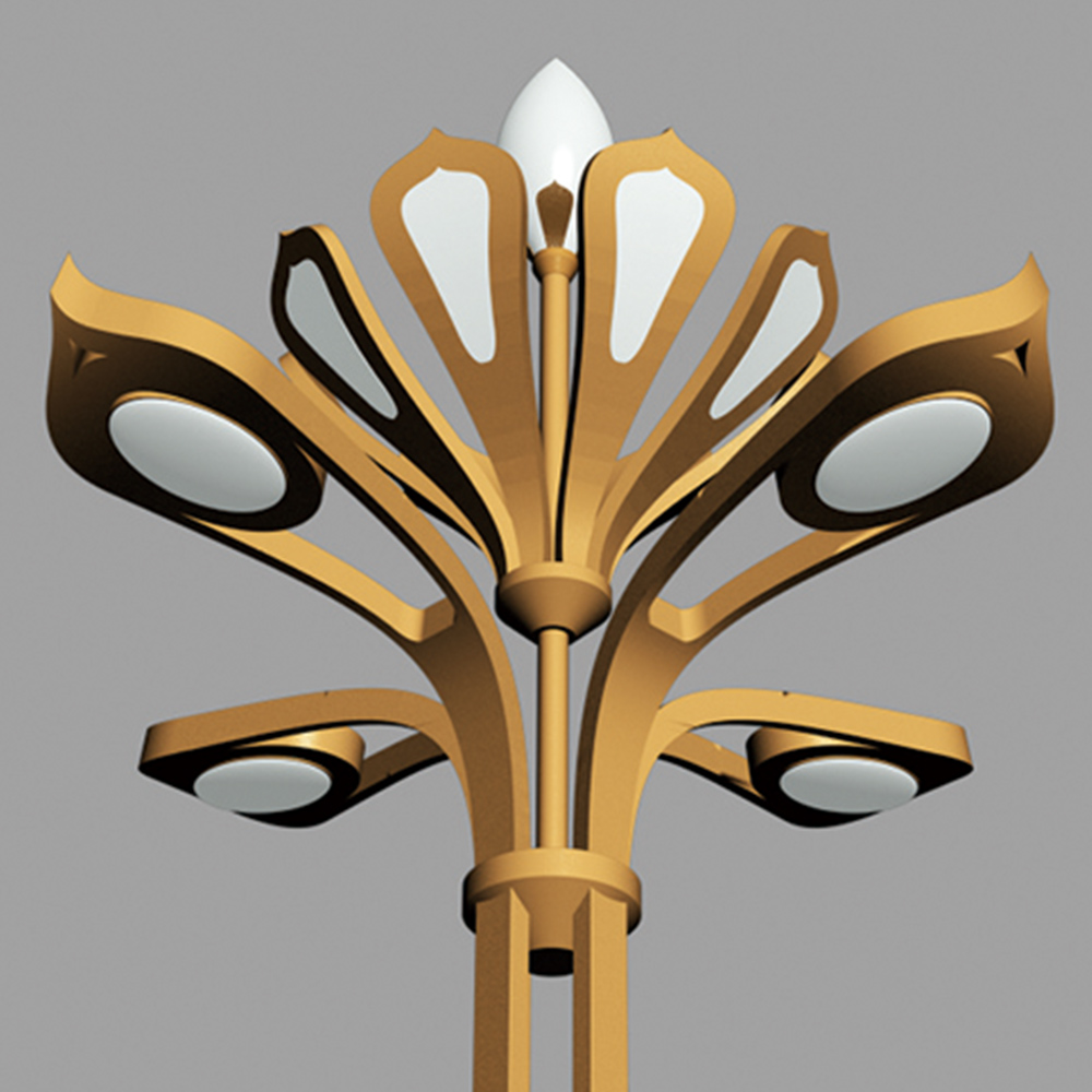 燈型整體造型以蓮花含苞待放的外形為設計元素,結合華燈造型特征,達到功能與景觀照明為一體的戶外燈具;