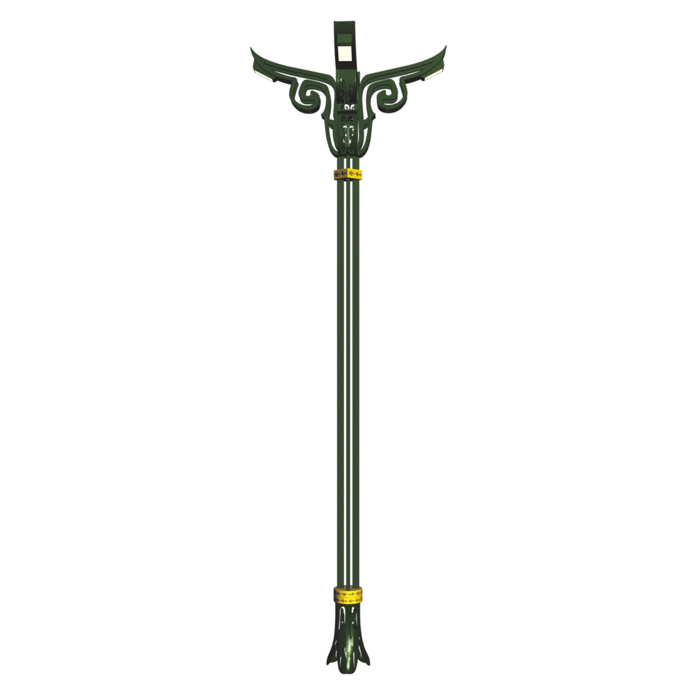 燈型主體、桿體、底座材質(zhì)為金屬鋼件表面熱鍍噴塑,可配光源LED/鈉燈。