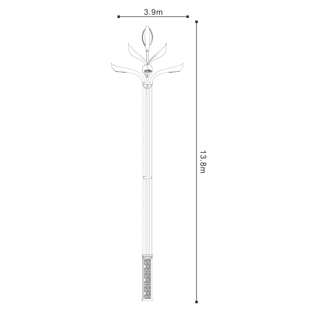 燈桿主體、桿體、底座材質(zhì)均為金屬鋼件,表面熱浸鋅后噴塑處理。