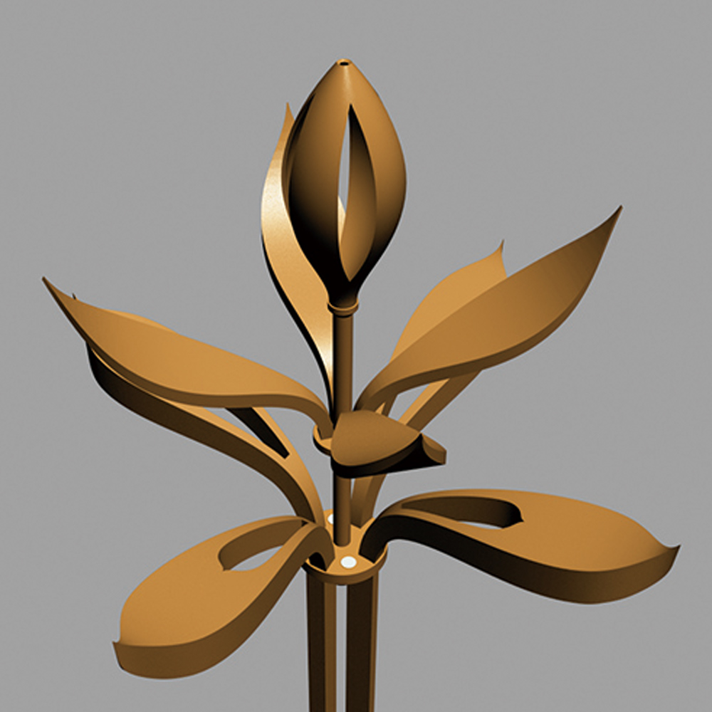 燈具的設(shè)計(jì)主要通過(guò)花卉造型進(jìn)行抽象設(shè)計(jì)而來(lái),結(jié)合現(xiàn)代工藝轉(zhuǎn)化為集景觀與功能照明為一體的戶(hù)外照明工具;