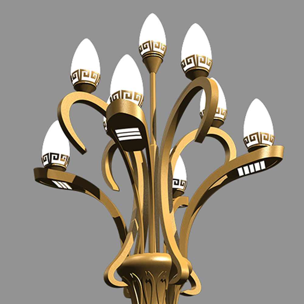該燈具是傳統(tǒng)道路照明的革新與創(chuàng)新,有濃厚的地域文化特色,顛覆的之前一般燈具的造型單一與無(wú)文化特色,在光源方面通過(guò)燈具采用設(shè)計(jì)以綠色照明為主要思路,使該燈具不僅注重人心理上的感受而且綠色環(huán)保、節(jié)能。