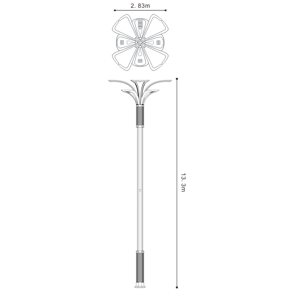 整體造型優(yōu)美、獨(dú)特,結(jié)構(gòu)精致巧妙,既滿足了道路照明的需求,又形成獨(dú)具的地方特色城市景觀,提升了城市品位,給市民帶來(lái)一種回歸自然的感受;