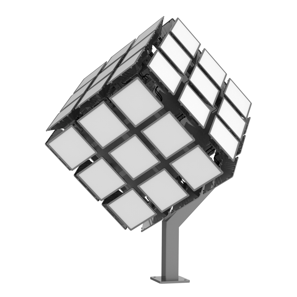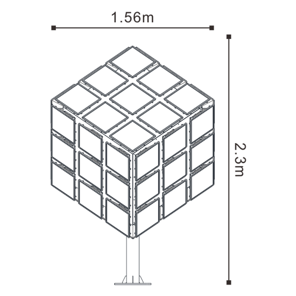 燈型主體采用智慧游戲“魔方”的造型,配以LED光源,體現(xiàn)新科技智慧;